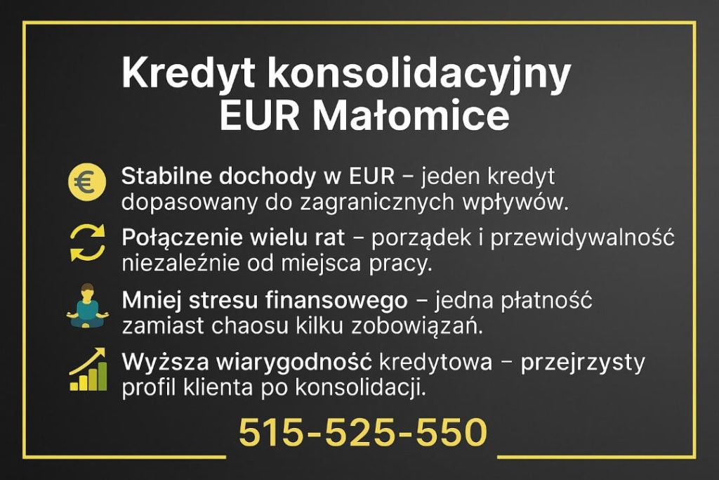 - Kredyt konsolidacyjny EUR Małomice – dla kogo i jak działa?