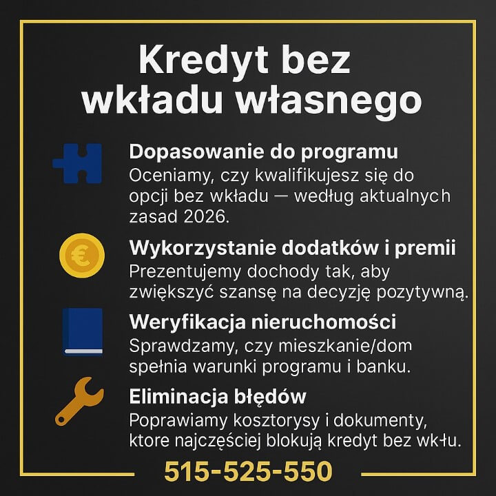 📞 Zadzwoń – +48 515-525-550 Zadbam o Twój kredyt i bezpieczeństwo prawne całej transakcji – bez żadnych opłat po Twojej stronie.