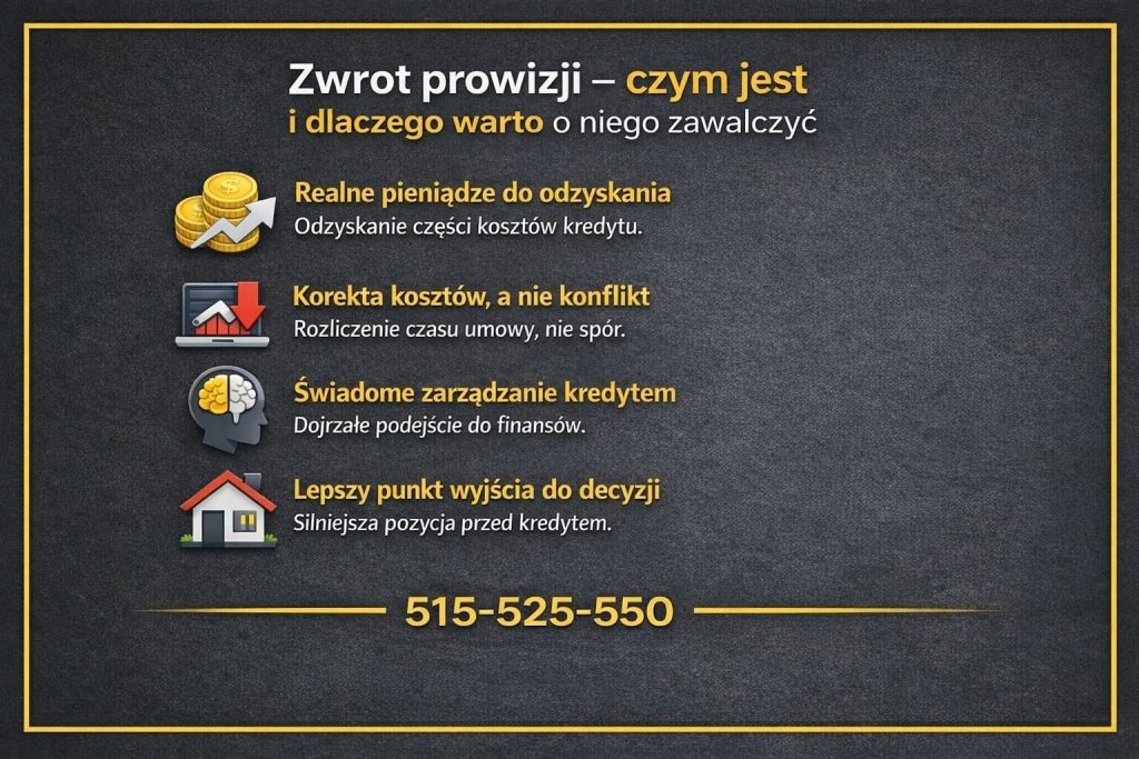 Zwrot prowizji nie wymaga od klienta rewolucji finansowej. To korekta przeszłych decyzji, która porządkuje sytuację na przyszłość i daje większą kontrolę nad kolejnymi krokami.
